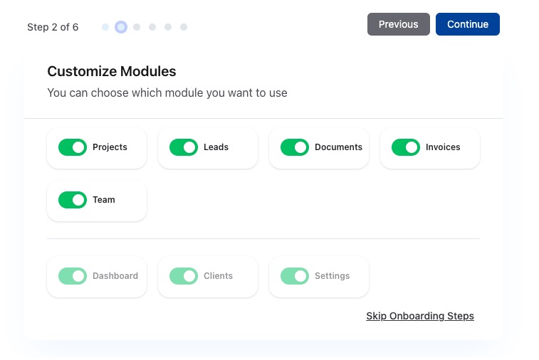 If you choose Skip Onboarding Steps at any point, you’ll see a confirmation dialog with two options:
